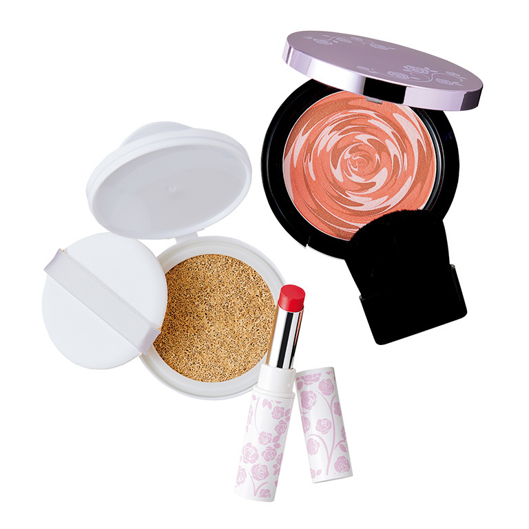ホリデーシーズンにぴったりな血色感のある華やかなメイクコフレです。ツヤのある肌へ導くファンデーション、ほんのり頬に明るさを演出するチーク、とろけるようななめらかさの色付きリップを一緒にお届けします。