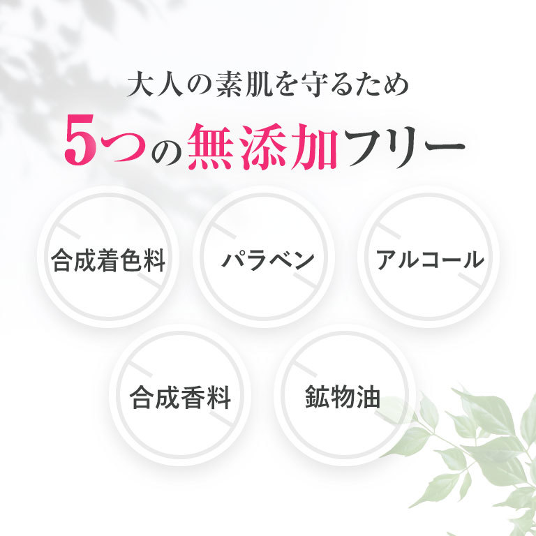 ●合成着色料不使用●鉱物油不使用●アルコール不使用